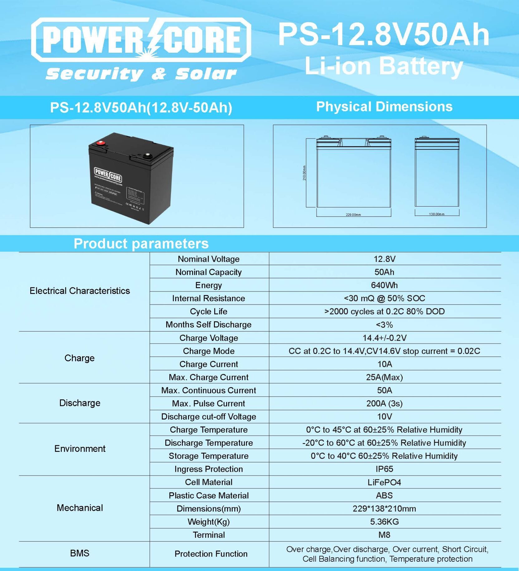 Introducing our dynamic 12.8V 50Amp lithium battery—a compact yet formidable powerhouse meticulously crafted to provide steadfast and enduring power. This lithium battery seamlessly blends cutting-edge technology with a robust design, assuring unwavering performance across a wide spectrum of applications, ranging from electronics to renewable energy systems. Count on its remarkable capacity and efficiency to uphold uninterrupted operations, making it the paramount choice for all your power needs. Empower your ventures with confidence, energized by our 12.8V 50Amp lithium battery.
